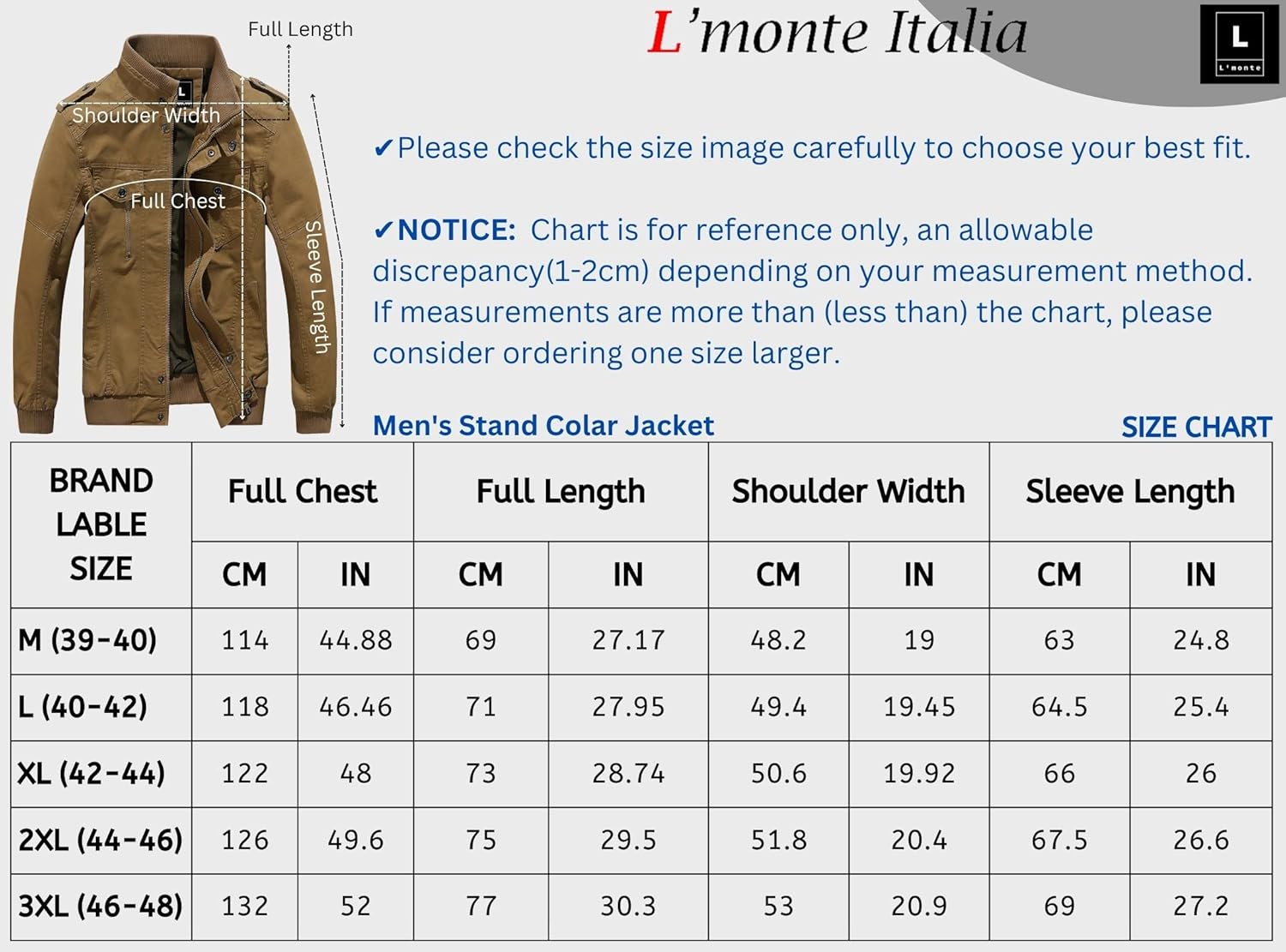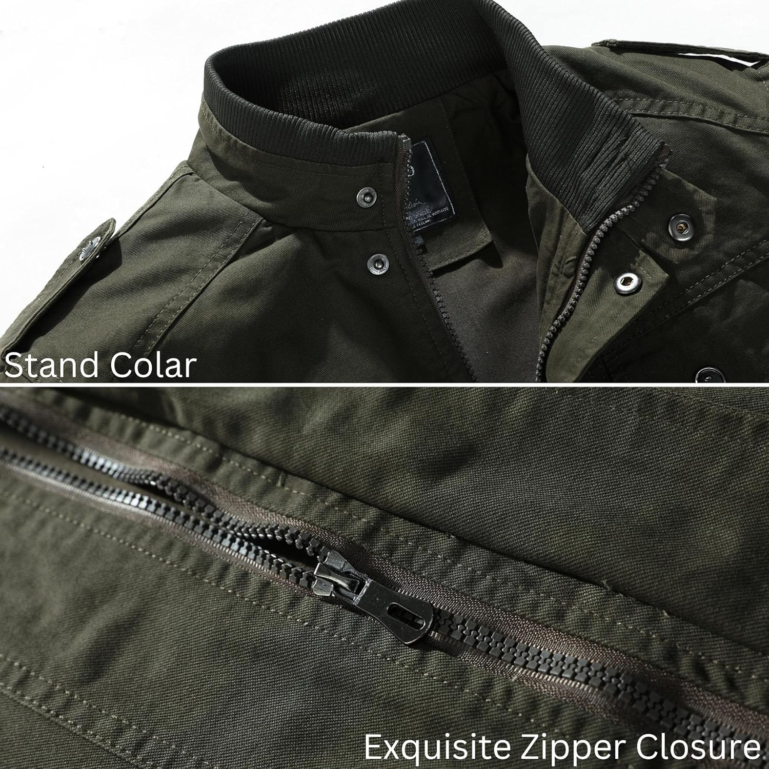 L’MONTE Men’s Military Stand Collar Bomber Jacket – Casual Cotton Fall Outerwear