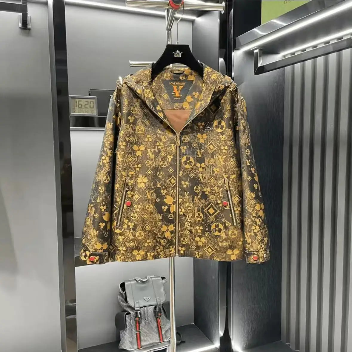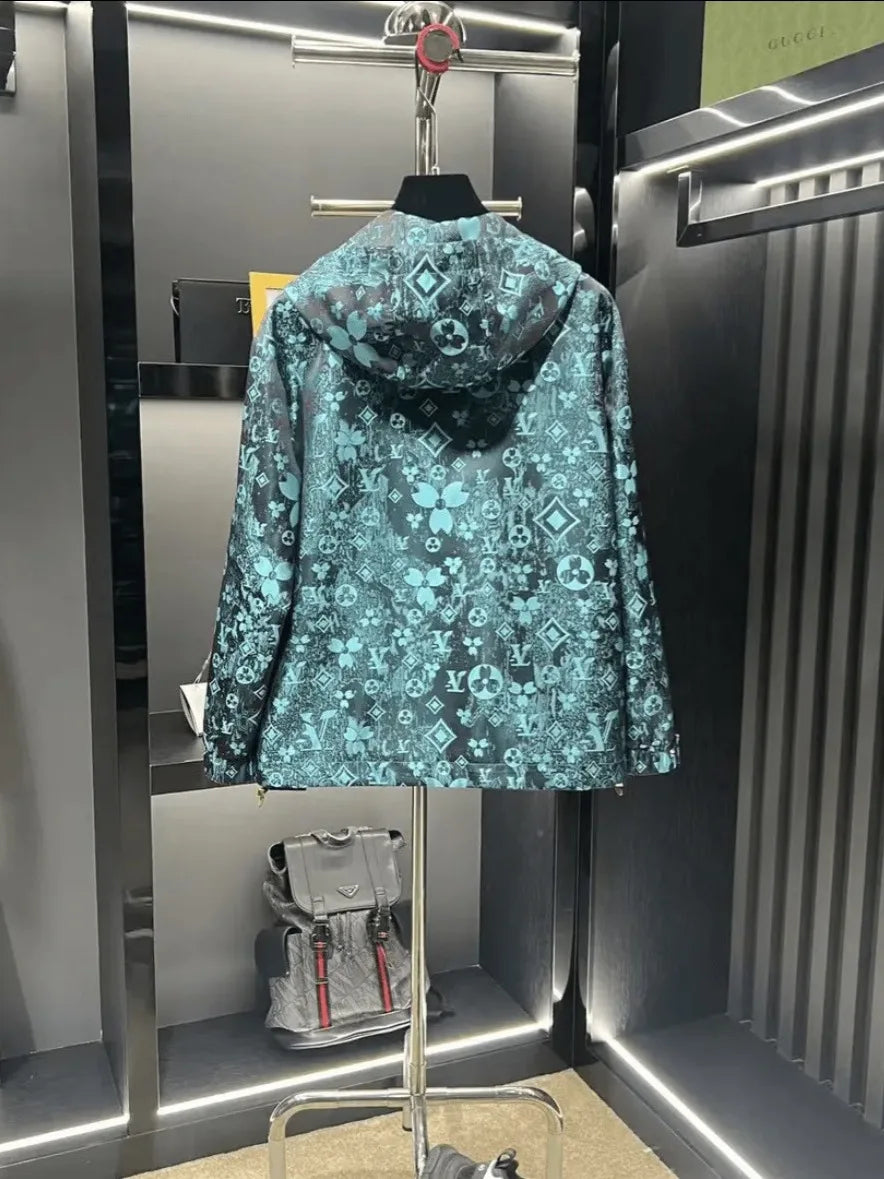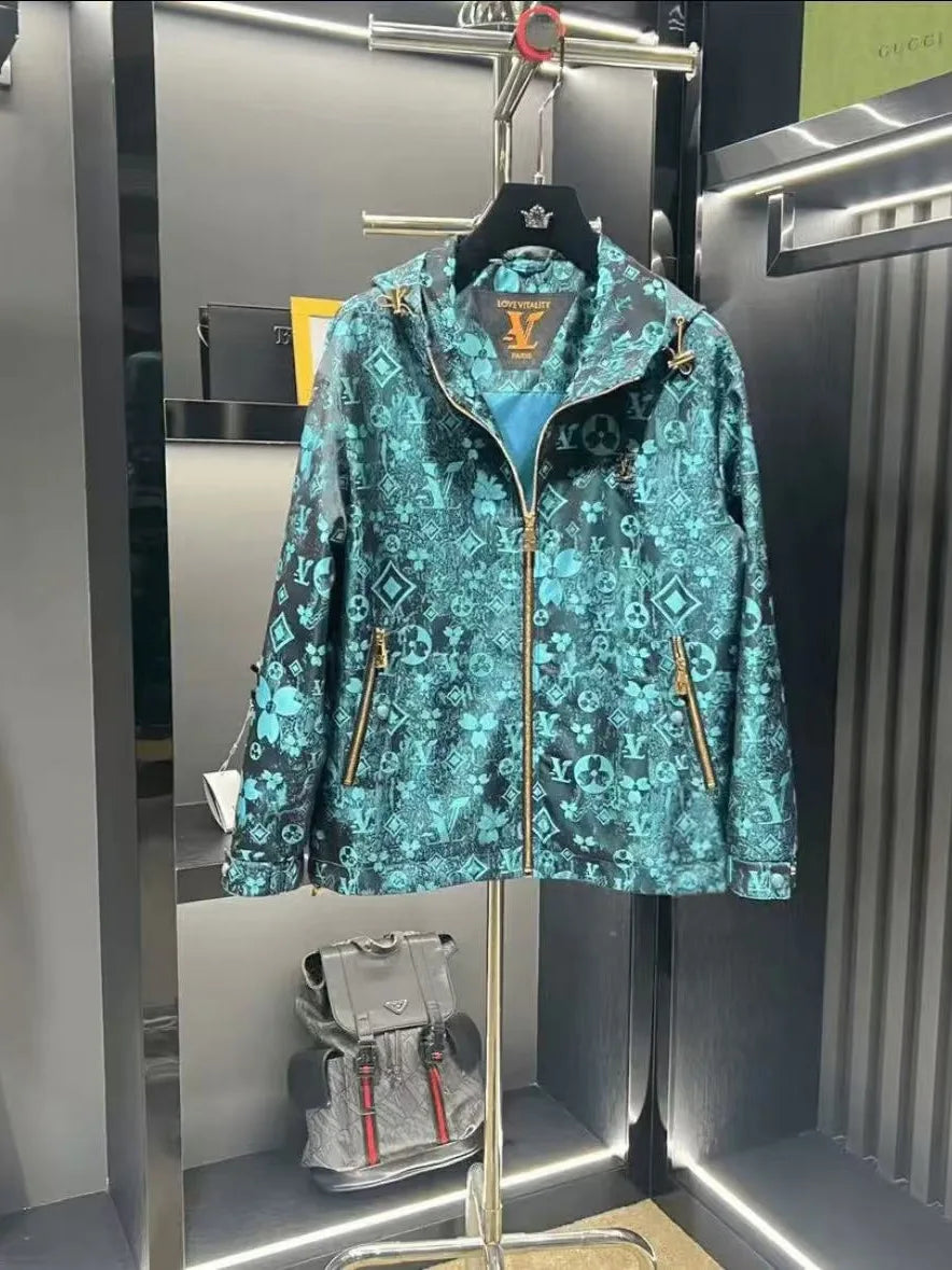 Men’s Casual Hooded Streetwear Jacket with Bold Print