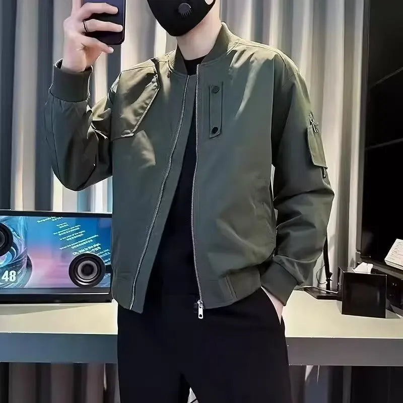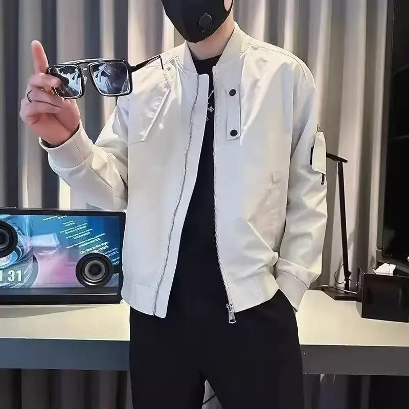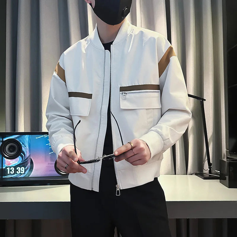 Men’s Light Luxury Contrast Color Bomber Jacket – Autumn Style